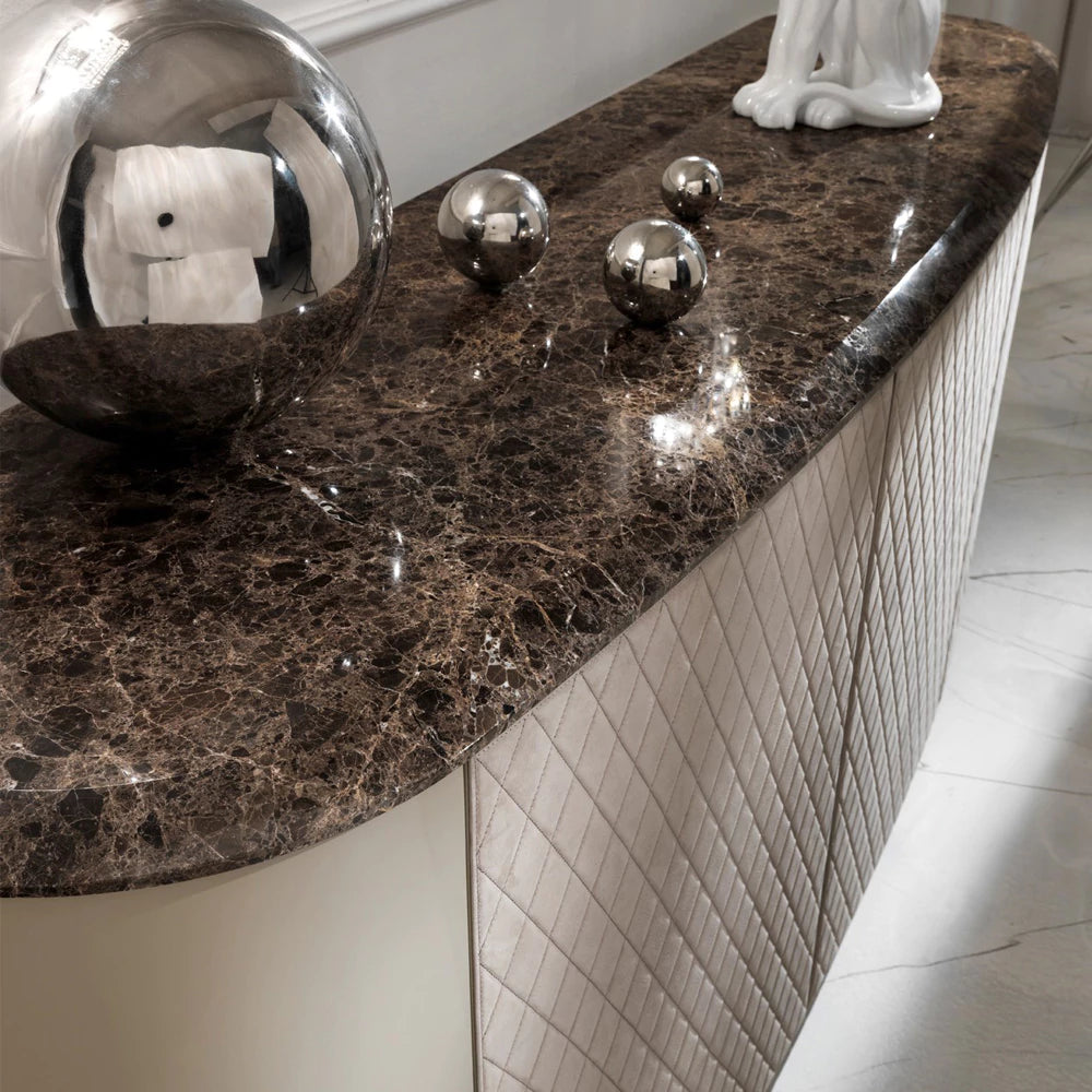Curved High-End Lacquered Quilted Leather Sideboard – 3 Doors
