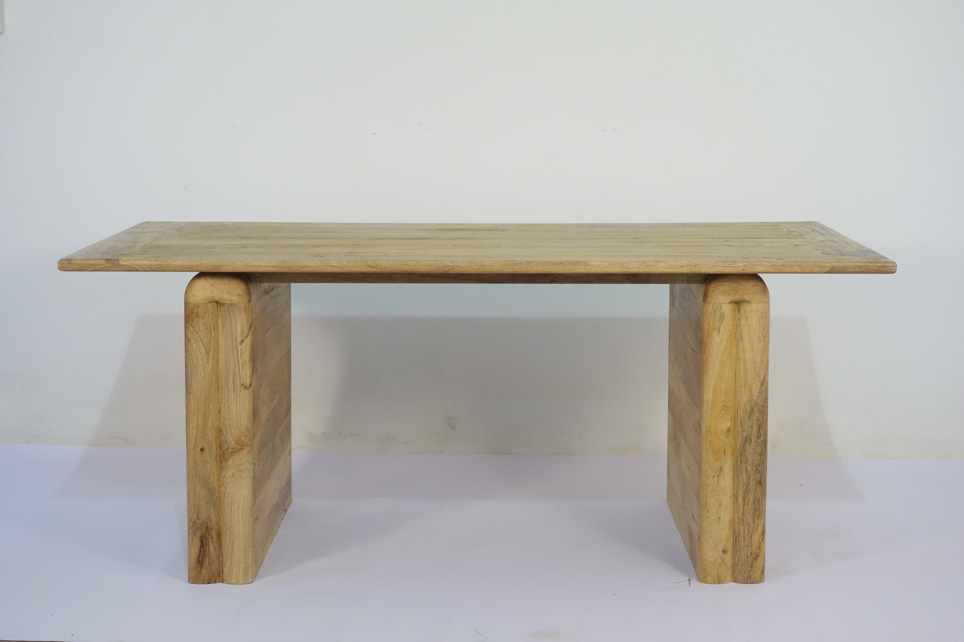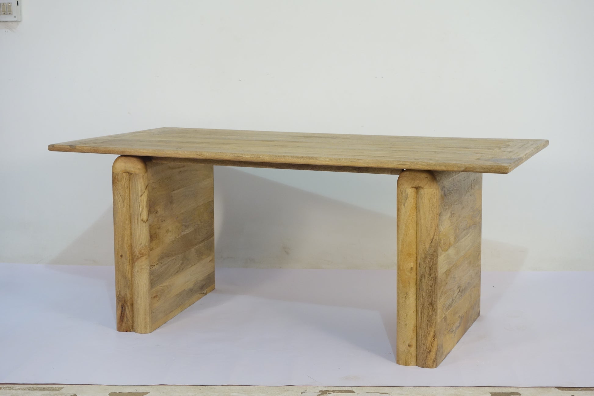 The Dewan Dining Table is crafted from solid mango wood and showcases a clean, square silhouette with a smooth, natural wood top. Designed with durability in mind, its sturdy construction and classic form make it a versatile centerpiece—perfect for both everyday meals and effortless entertaining in any home.
