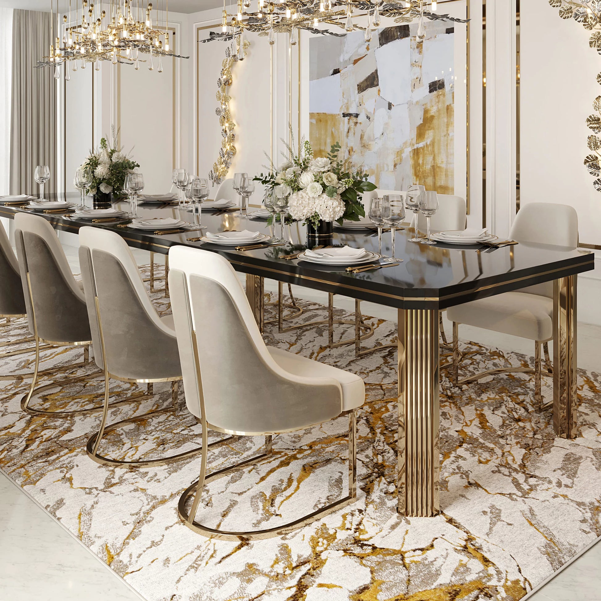 The Large Contemporary Rectangular Dining Table is a stunning centrepiece, designed to impress in a spacious dining area. Every inch exudes sophistication and glamour, making it the perfect setting for entertaining guests or hosting formal gatherings.