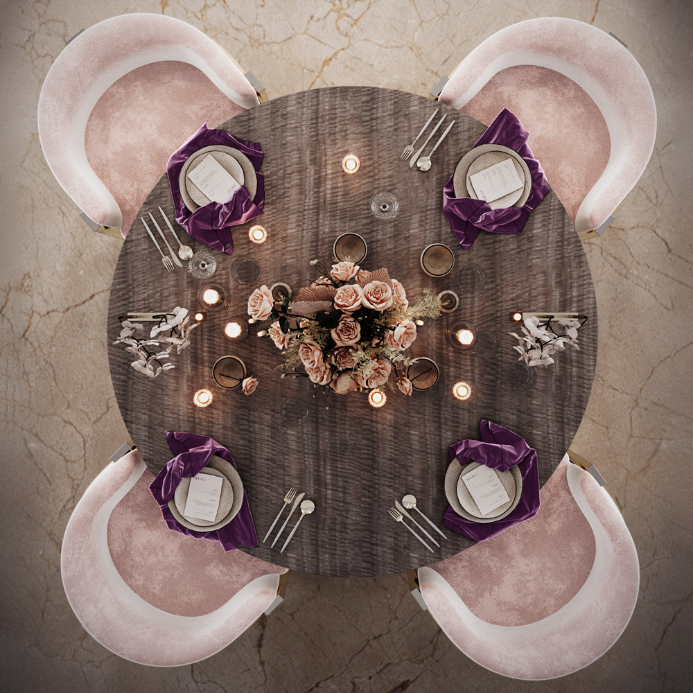 A striking statement of contemporary elegance, the Round Modern Ribbed Veneer Dining Table draws inspiration from Ancient Greece, blending timeless culture with modern luxury. A true showpiece, it is perfect for social gatherings, professional meetings, or as a glamorous focal point in any dining space.