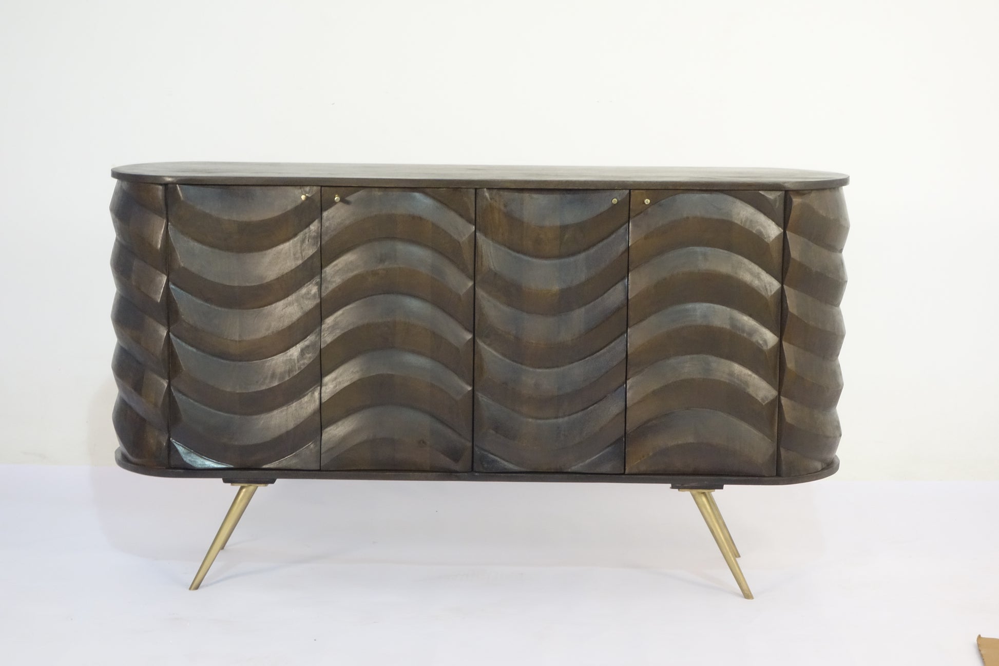 Elevate your space with the Devan Sideboard, expertly crafted from solid mango wood and accented with a striking Lehar (wave) carved pattern across its four doors. This elegant piece blends artistry with practicality, offering generous internal storage while adding movement, texture, and modern sophistication to any interior style.